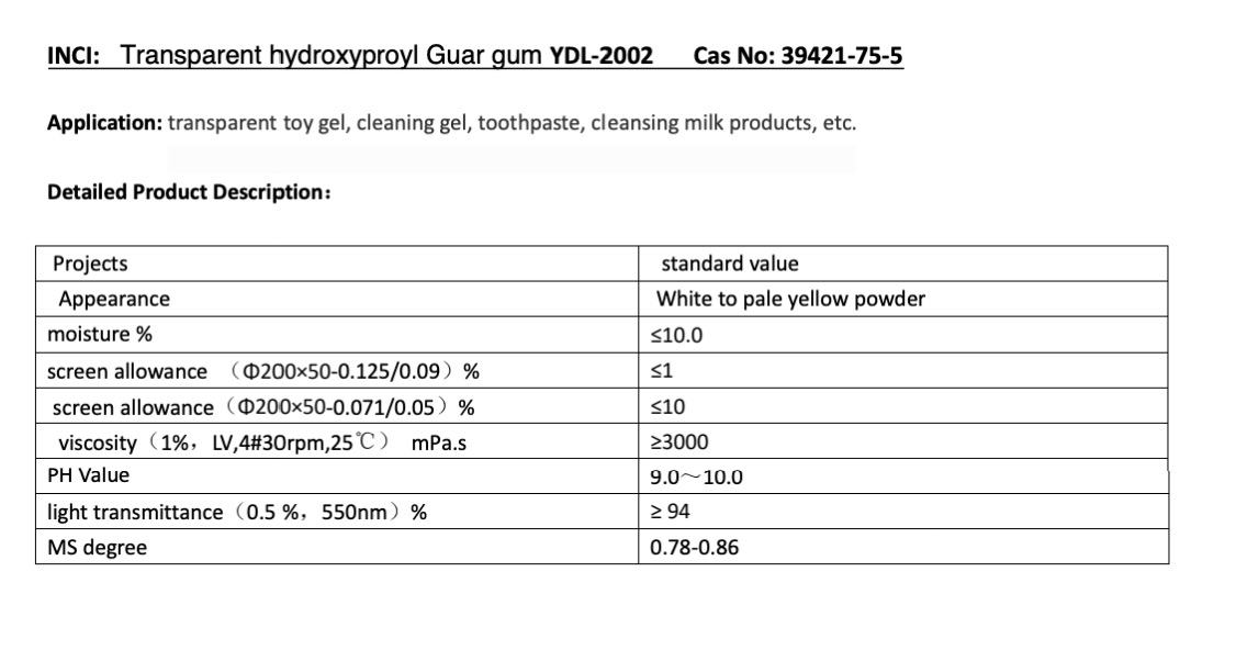 Put YDL-2002 into the water with stirring, and add organic acid to adjust pH to 5~7, sequentially with agitation, viscosity will be released immediately.